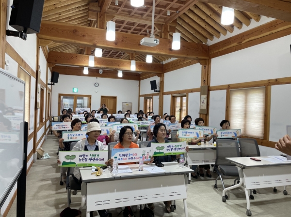 [국회의정저널] 대전광역시농업기술센터는 6일 옥천전통문화체험관을 빌려 한국생활개선대전광역시연합회 대의원 50여명이 대상으로 “여성농업인 탄소중립 실천 GOGOGO 대회”를 개최했다.