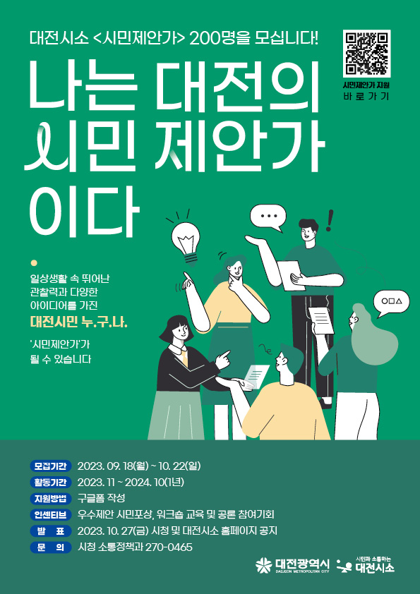 [국회의정저널] 대전시가 작지만 의미 있는 공공활동을 주도할 ‘일상공감 시민제안가’를 모집한다.