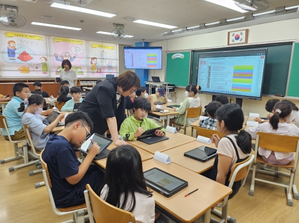 김포 솔터초는 디지털 기반 학생 맞춤형 교육을 실천하는 ‘디지털 선도학교’로 지난 13일부터 학생과 교사의 교수·학습 과정을 지원하는 AI 기반 교수·학습 플랫폼 ‘하이러닝’시범 운영을 시작했다.