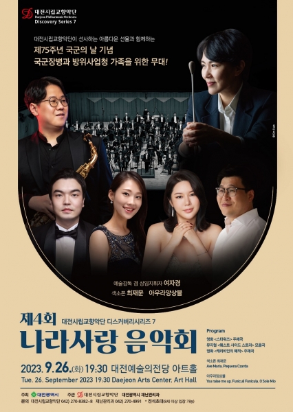 공연은 대전시립교향악단의 예술감독 겸 상임지휘자인 여자경의 지휘로 색소폰 연주자 최재문과 성악 앙상블인 아우라 앙상블이 협연해 60분간 펼쳐진다.