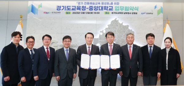 [국회의정저널] 경기도교육청이 12일 중앙대학교와 전통문화예술교육의 체계적 지원을 위해 협력체계를 구축하기로 했다.