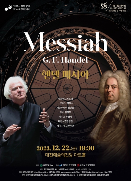 [국회의정저널] 대전시립합창단과 대전시립교향악단이 공동 주관하는 2023년 마지막 공연 ‘헨델 메시아’가 22일 오후 7시 30분 대전예술의전당 아트홀에서 펼쳐진다.