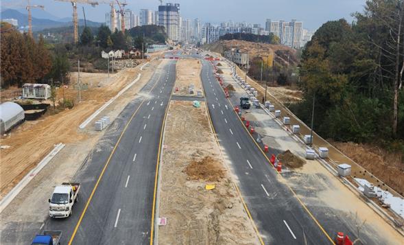 [국회의정저널] 대전시는 22일 서구 관저동에서 유성구 용계동을 연결하는 도안대로 개설공사 구간의 왕복 4차로를 부분 개통한다.