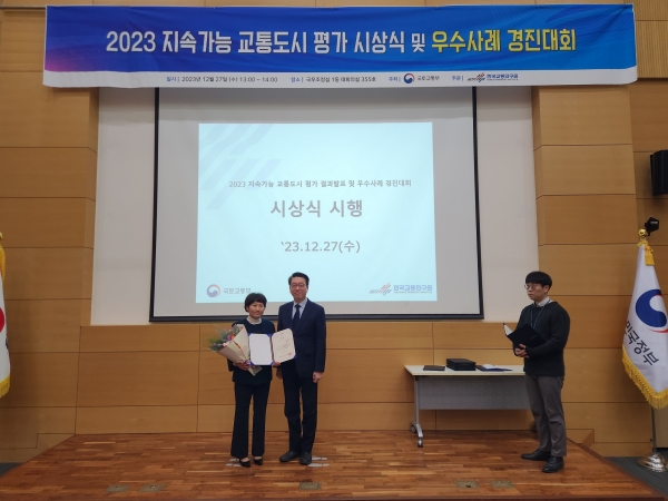 [국회의정저널] 대전시가 국토교통부가 주최하고 한국교통연구원이 주관하는 ‘2023년 지속가능 교통도시 평가’에서 ‘최우수상’을 받았다.