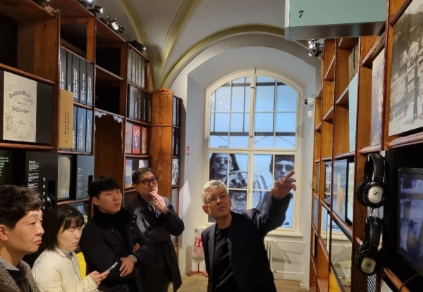 연수팀은 베른하르트 페츠 관장을 만나, 빈 국립문학관이 과거 왕립문서고를 문학관으로 활용하고 있는 점, 아카이브 중심의 전시를 구현하고 있다는 점이 옛 테미도서관 건물을 리모델링해 아카이브와 열린 수장고를 주제로 조성하려는 제2대전문학관과 유사하다는 점을 설명하고 빈 문학관의 조성 과정과 운영에 대해 많은 대화를 나눴다.