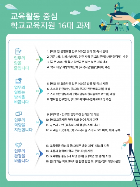 교육활동 중심 학교교육지원 16대 과제 업무 양 줄이고 일하는 방식과 환경 확 바꿔
