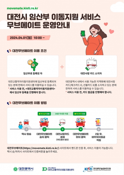 [국회의정저널] 대전시는 임산부의 이동 편의를 위해 4월 1일부터 ‘임산부 이동지원서비스’ 사업을 추진한다.