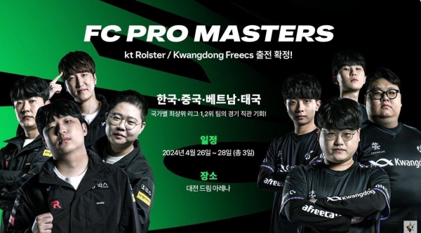 FC 프로 마스터즈는 4월 26일부터 사흘간 대전 이스포츠경기장에서 열릴 예정으로 FC온라인 팬들은 아시아 국가 최상위 리그 강팀들의 경기를 직관할 수 있게 됐다.