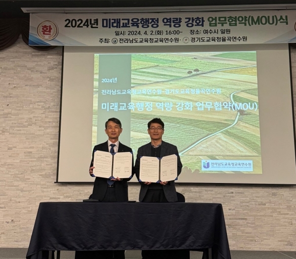 이날 협약식에는 왕태환 경기도교육청율곡연수원장, 한경호 전라남도교육청교육연수원장, 연수생 등 주요 관계자들이 참석한 가운데 전라남도 여수에서 열렸다.