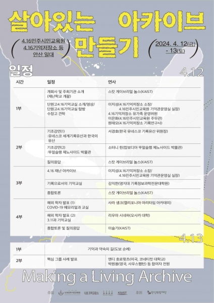 4.16기억저장소, 카이스트와 공동 주최하는 이번 국제학술대회는 단원고 4.16기억교실에 대한 국제학자들의 다양한 시각 논의와 폭넓은 관점의 소통과 토론을 위해 마련된 자리다.