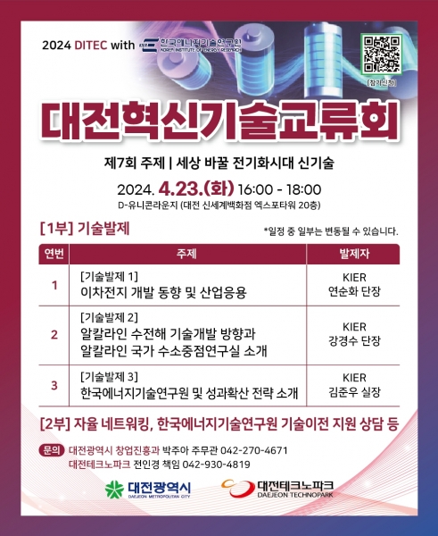 대전혁신기술교류회, 이차전지와 수소 에너지기술 소개