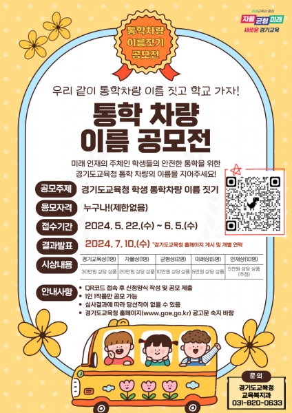 [국회의정저널] 경기도교육청이 5월 22일부터 6월 5일까지 ‘통학차량 이름짓기’ 공모전을 개최한다.