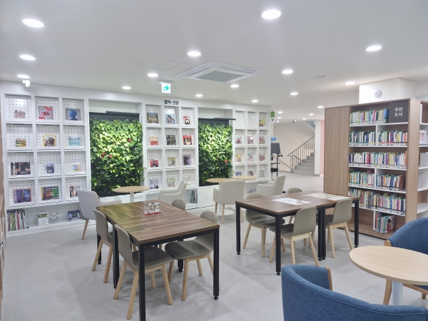 지난 1985년 개관한 도서관은 이번 사업을 통해 전체 면적 1,139㎡ 규모의 재구조화를 완료했으며 벽을 허물고 출입문을 없애 개방형 복합문화공간으로 조성됐다.