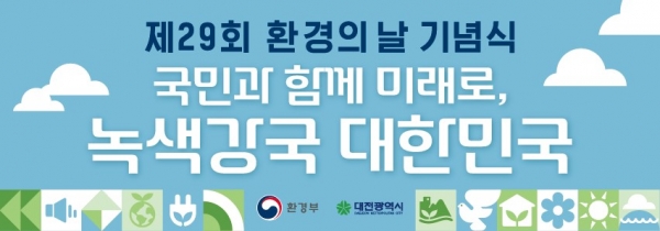 [국회의정저널] 대전시는 5일 시청 대강당에서 ‘국민과 함께 미래로 녹색강국 대한민국’라는 주제로 시민, 민간단체, 환경기술인 등 350여명이 참여하는 제29회 환경의 날 기념행사를 개최한다.