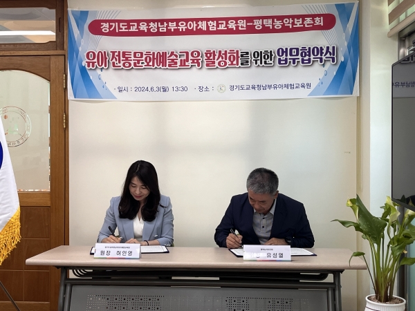 [국회의정저널] 경기도교육청남부유아체험교육원이 3일 평택농악보존회와 유아 전통문화예술교육 활성화를 위한 업무협약을 체결했다.