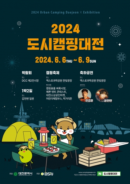[국회의정저널] 대전시는 도심 속 캠핑과 축제를 함께 즐길 수 있는 ‘2024 도시캠핑대전’을 6월 6일부터 9일까지 4일간, 대전컨벤션센터 제2전시장과 엑스포과학공원, 갑천변 일원에서 개최한다.