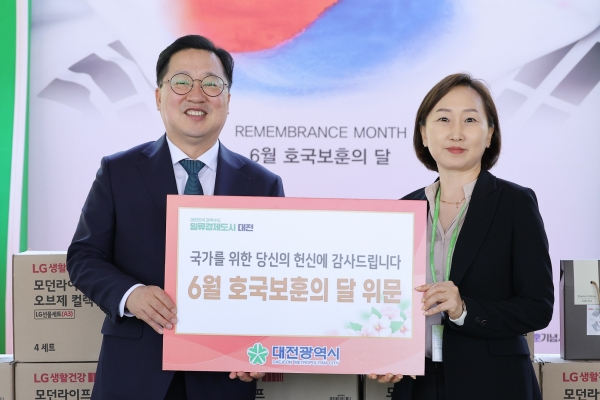 [국회의정저널] 이장우 대전시장은 6월 호국보훈의 달을 맞아 12일 국군대전병원과 대전보훈요양원을 방문해 부상 장병 및 국가유공자들에게 위문품을 전달하고 감사와 위로의 마음을 전했다.