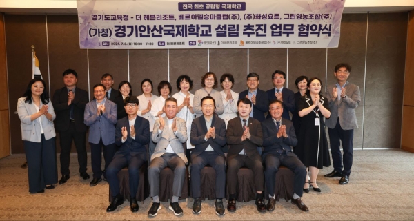 경기도교육청은 이날 오전 안산 대부도 ‘더 헤븐 리조트’에서 경기안산국제학교 지역특화 맞춤형 교육을 위해 지역 기업 4곳과 업무협약을 체결했다.