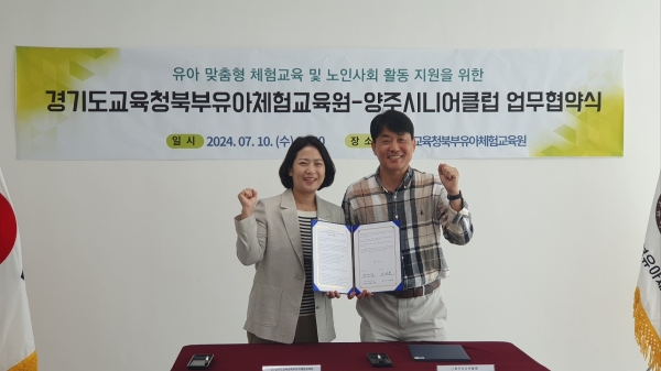 [국회의정저널] 경기도교육청북부유아체험교육원은 양주시니어클럽과 노인 일자리 활용을 통한 유아 맞춤형 체험교육 지원을 위한 업무협약을 10일 체결했다.