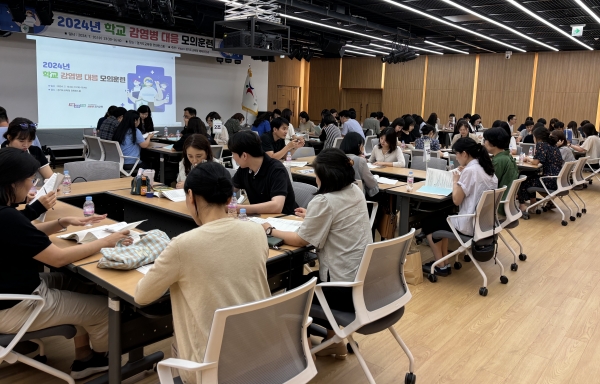 또 미리 제공한 훈련용 워크북을 참고해 제시한 감염병 발생 시나리오 단계에 따라 학교, 교육청, 보건소 구성원별로 주요 조치사항을 작성하고 토의하는 방식으로 모의훈련을 실시했다.