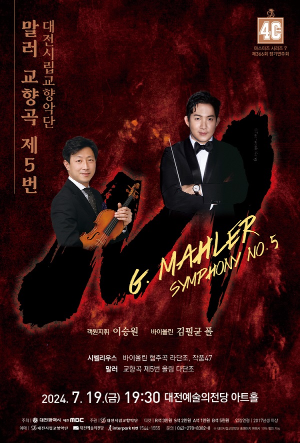 [국회의정저널] 대전시립교향악단은 19일 저녁 7시 30분 대전예술의전당 아트홀에서 마스터즈시리즈 7‘말러 교향곡 제5번’을 선보인다.