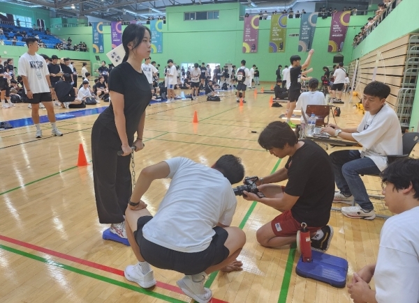 모의 실기 테스트는 체육대학 입시의 주요 6종목 △10m 왕복달리기 △서전트 점프 △제자리멀리뛰기 △윗몸일으키기 △좌전굴 △배근력으로 구성된다.