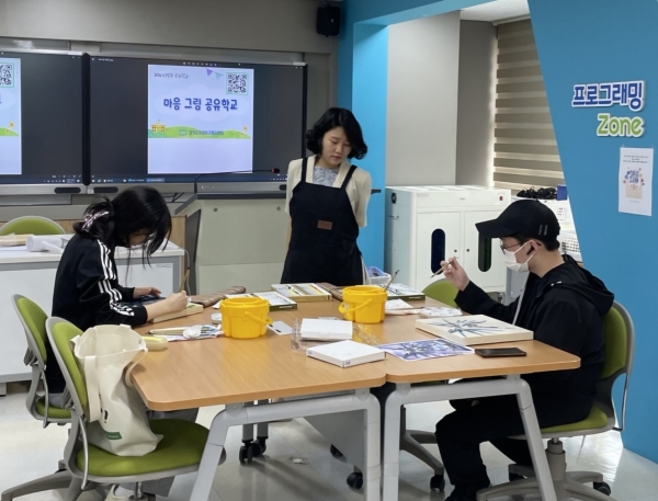 ‘마음그림 공유학교’에서는 지역의 예술 전문강사와 함께 매주 토요일 심리·정서적 어려움을 겪는 중·고등학교 학생을 대상으로 미술 치유 프로그램이 54차시 진행된다.