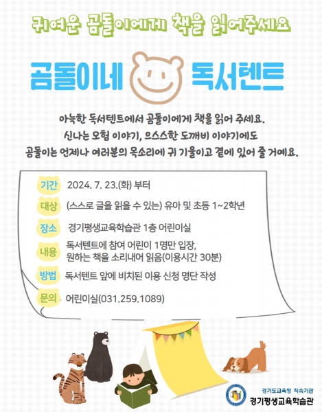 조정수 경기평생교육학습관장은 “어린이의 새로운 독서 경험은 지식을 습득하는 것뿐만 아니라 나를 성장시키고 발전시키는 좋은 기회가 될 것”이라고 말했다.
