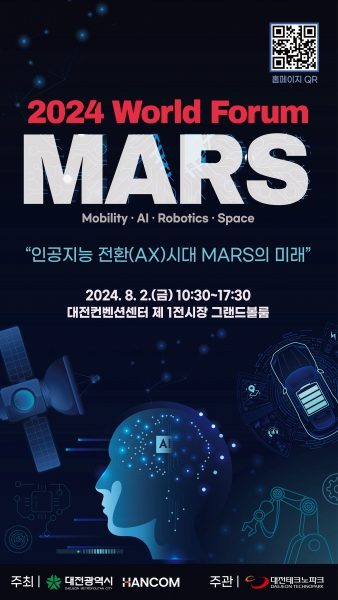 올해로 4번째인‘마스 월드포럼’은 대전시와 한글과컴퓨터그룹이 함께‘모빌리티, 인공지능, 로봇, 우주’분야의 전문가를 초청해 특별강연 등을 진행하는 첨단기술 전문 세미나 행사이다.