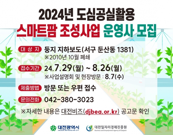 [국회의정저널] 대전시는 2024년 도심공실활용 스마트팜 조성사업에 참여할 운영사를 8월 26일까지 모집한다.