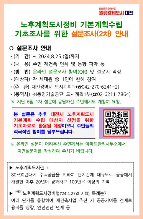대전시 노후계획도시정비 설문조사 추진
