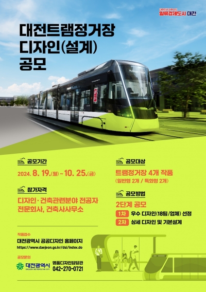 트램 정거장 디자인 공모에 대한 자세한 사항은 대전시 공공디자인 공모전 홈페이지를 통해 확인할 수 있으며 기타 궁금한 사항은 대전시 명품디자인담당관으로 문의하면 된다.