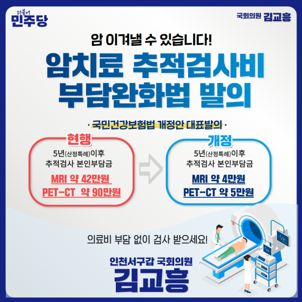 김교흥 국회의원, 암 극복 위한 ‘암치료 추적검사비 부담완화법’ 발의