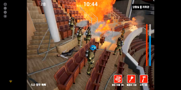 소방관들이 4명씩 조를 이루어 최대 20명이 동시 접속해 각각의 역할에 따라 소방 훈련할 수 있으며 실제 건물 내부와 똑같이 만들어 출입구, 소화시설, 방화벽 등을 사전에 확인할 수 있다.