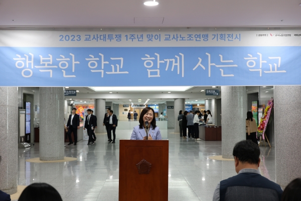 '2023 교사대투쟁 1주년 기념 사진전은 ‘행복한 학교 함께 사는 학교 - 거리에서 국회로’라는 주제로 교육의 본질적 의미를 생각해 보고 교원, 학생, 학부모, 시민이 다 함께 행복한 사회를 만들기 위한 교육적 통찰을 공유하기 위해 기획됐다.