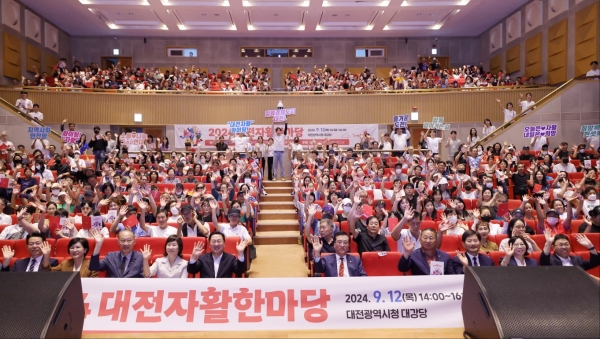 이장우 대전시장을 비롯해 조원휘 대전시의회 의장, 김선경 대전지역자활센터협회장 등 주요 내빈과 자활기업인, 종사자, 주민 등 700여명이 참석한 이날 행사는 레크리에이션을 시작으로 자활사업 생산품 전시, 유공자 표창, 문화공연 등 다채로운 프로그램으로 진행됐다.