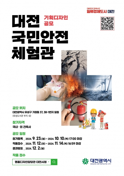 대전시 관계자는 “중부권 재난안전 교육의 거점이 될 대전국민안전체험관의 창의적이고 혁신적인 디자인을 위해 유능한 국내외 건축가의 적극적인 참여를 바란다”고 말했다.