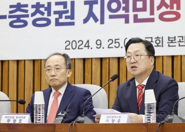 이날 협의회에는 이장우 대전시장을 비롯해 당에서는 추경호 원내대표·김상훈 정책위의장·이상민 대전시당 위원장 등 주요 지도부가 함께했다.