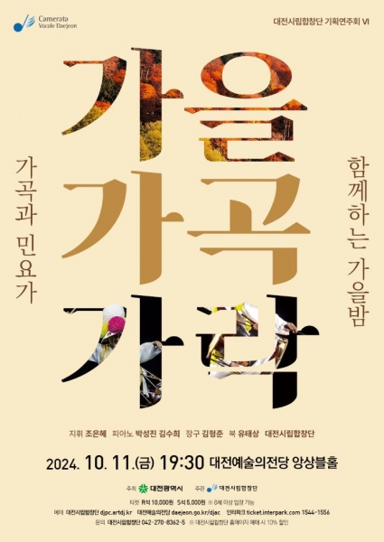 [국회의정저널] 대전시립합창단의 여섯 번째 기획연주회‘가을 가곡 가락’ 이 11일 오후 7시 30분 대전예술의전당 앙상블홀 무대에 오른다.