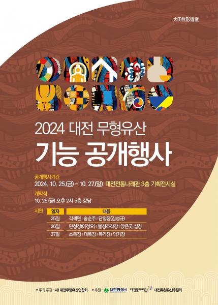 [국회의정저널] 대전시는 25일부터 27일까지 대전전통나래관에서 ‘2024 대전시 무형유산 합동공개행사’를 개최한다.