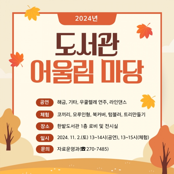 [국회의정저널] 2024년 한밭도서관 어울림 마당이 11월 2일 한밭도서관 전시실에서 개최된다.