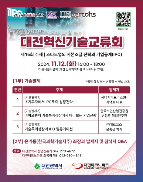 대전혁신기술교류회, 자본조달 전략과 IPO 논의