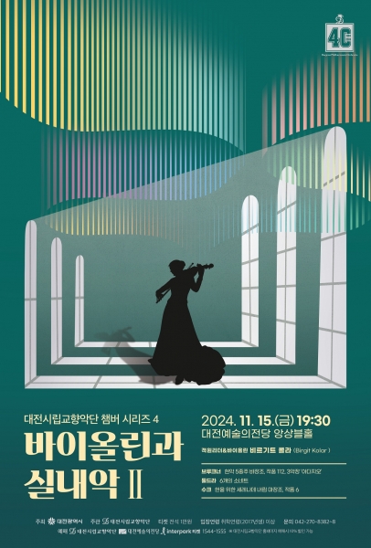 [국회의정저널] 대전시립교향악단은 11월 15일 저녁 7시 30분, 대전예술의전당 앙상블홀에서 ‘챔버 시리즈 4 바이올린과 실내악 Ⅱ’를 선보인다.