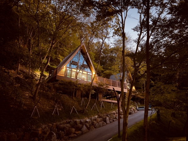 나무 위에 둥지를 튼 듯한 이 숙소는 설경을 담은 큰 창과 어둠을 밝히는 작은 조명이 마치 동화 속 요정들의 집처럼 신비로운 분위기를 자아낸다.