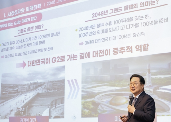 이번 특강은 ‘대전시 미래 전략과 시정 방향’ 이란 주제로 진행됐으며 이 시장은 ‘개척자들의 도시, 120년 대전사’를 소개하며 일류도시 대전을 지향하는 민선 8기 주요 성과와 시정 방향 등을 전했다.