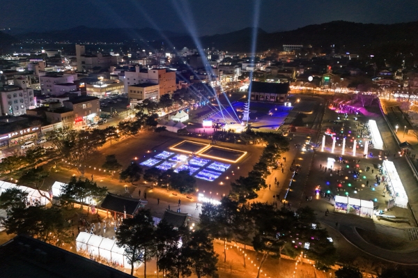 갓 피어난 벚꽃 아래 수많은 방문객을 매료시키며 부여의 밤을 빛냈다.