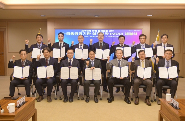 광주광역시는 15일 시청 비즈니스룸에서 지역 금융공공기관들과 ‘지역 인재양성 활성화를 위한 업무협약’을 체결했다.