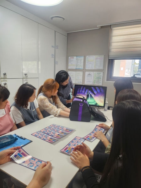 보건소는 직접 기관을 방문해 이론 교육과 함께 손씻기 뷰박스를 활용한 체험형 교육을 병행하고 있다.
