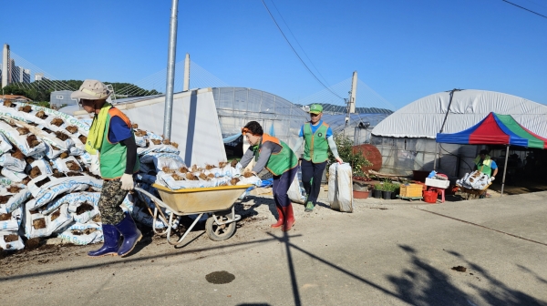 이날 복구현장에는 자율방재단연합회 소속 40명이 참여해 비닐하우스 내부 정리, 토사물 제거, 가재도구 세척 등 복구작업에 구슬땀을 흘렸다.