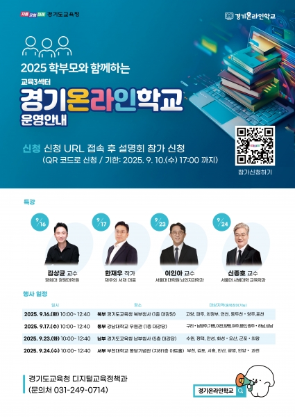 [국회의정저널] 경기도교육청는 16일부터 24일까지 도내 4개 권역에서 ‘2025 학부모와 함께하는 경기온라인학교 운영 안내’를 총 4회에 걸쳐 진행한다.